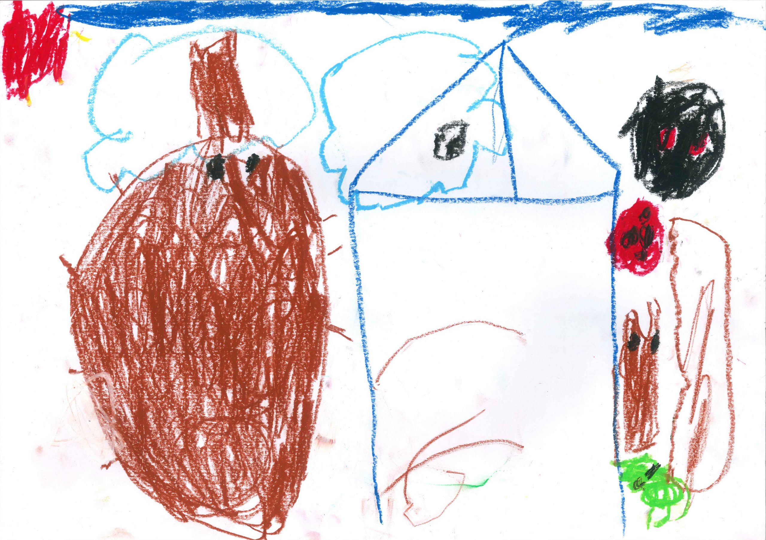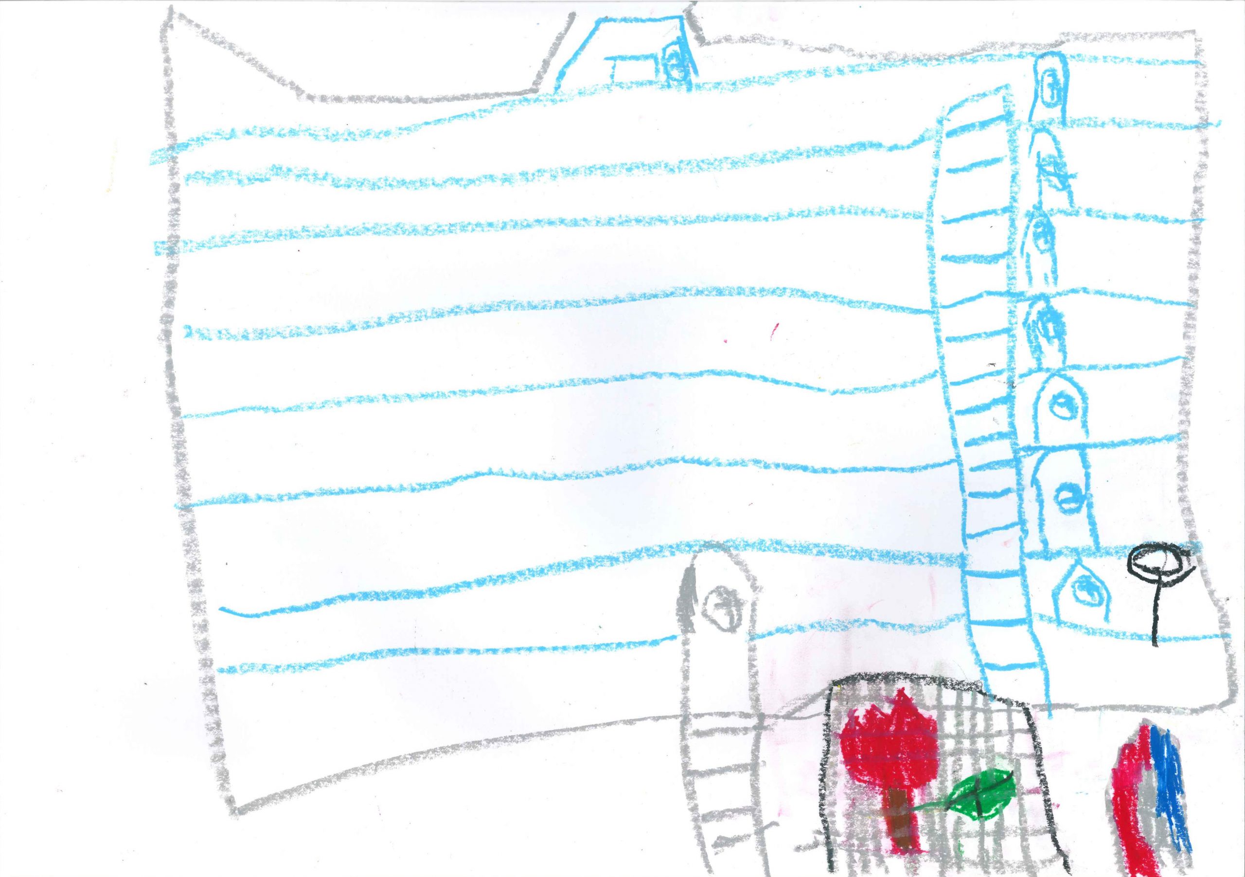 ともえ保育園 山口 晴翔 広くて住めそうなお家に住みたいからお家の絵を描きました。
